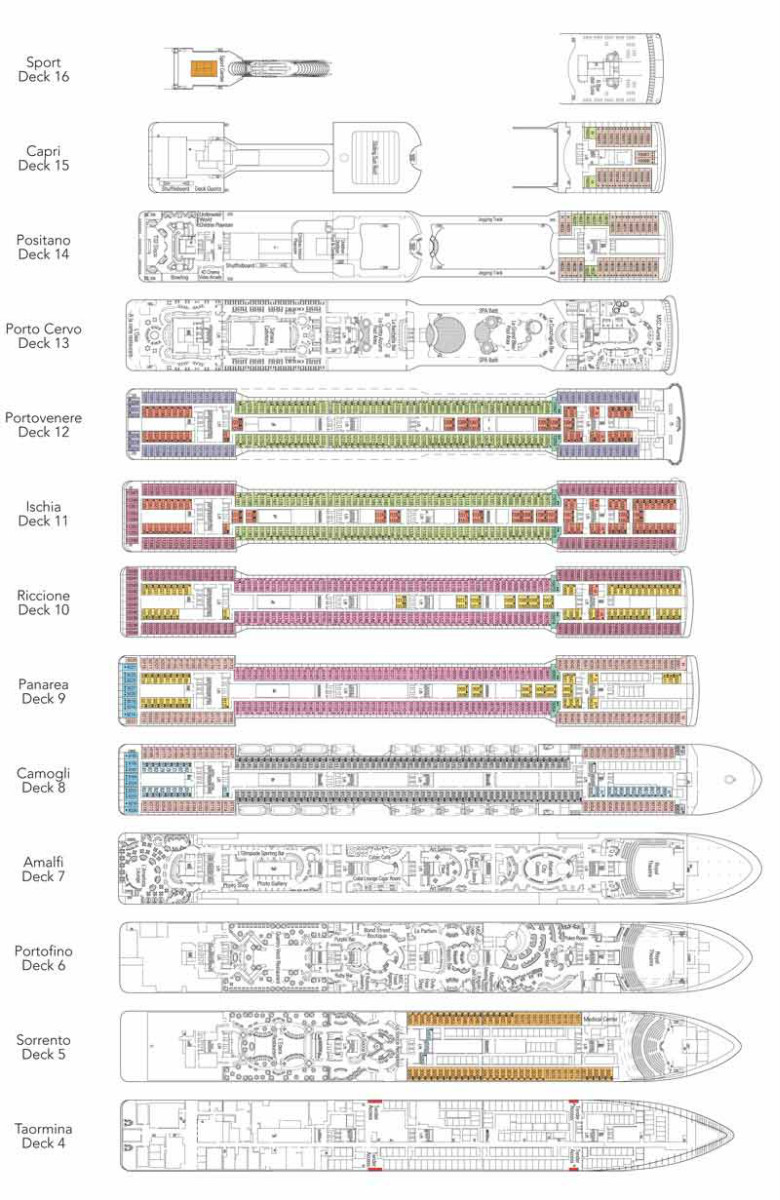 Verifique sempre a planta do navio para escolher a cabine ideal para seu cruzeiro conforme o exemplo abaixo do MSC Magnifica.