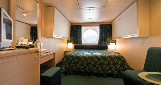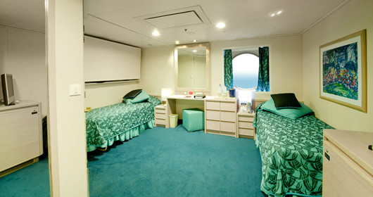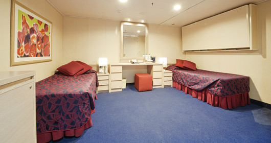 Camas de solteiros que poderão ser convertidas em cama de casal (mediante solicitação), exceto nas cabines destinadas aos portadores de deficiência física. Armário espaçoso, Banheiro com chuveiro, TV, Telefone, Conexão de internet através de seu próprio laptop (serviço pago), Minibar e cofre, Ar condicionado. Suítes com área de 16m2.