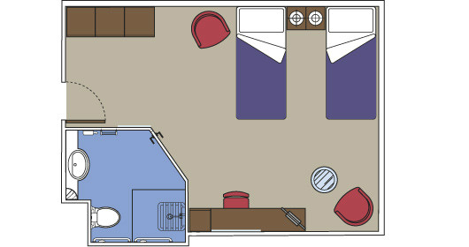 Todas as camas podem ser transformadas em camas de solteiro ou de casal (conforme a sua solicitação). Armário espaçoso, Banheiro com chuveiro, TV interativa, Telefone, Conexão de internet através de seu próprio laptop (serviço pago), Minibar e cofre, Ar condicionado. Cabine com área de 17m2 a 20m2.